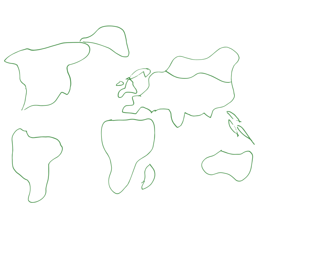 AboutAesthetics though ignorance. I had to draw a visual of a world map for a job recently and was surprised by how little I know about actual geography. I wondered other people shared my ignorance so I asked my friends and colleagues to draw the outline of a world map from memory without any reference. Here are the results.